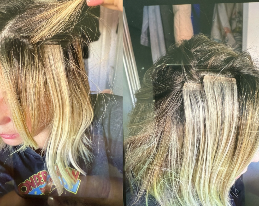 Embarrassed of how my hair had become, I hid the damages using stick on tape extensions to fill out my hair.